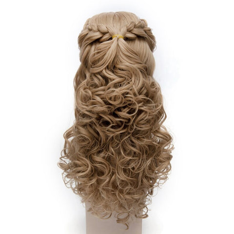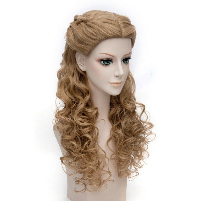 Vind je ideale prins en wees de mooiste prinses tot de middag met onze Assepoesterpruik! De ideale natuurlijke blonde tint gestyled in een lange krullende manen, vergezeld van een middenkapsel met twee vlechten die aan de achterkant zijn vastgebonden, perfect gedaan om te worden als het beroemdste personage van Disney, Assepoester.