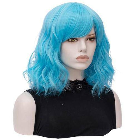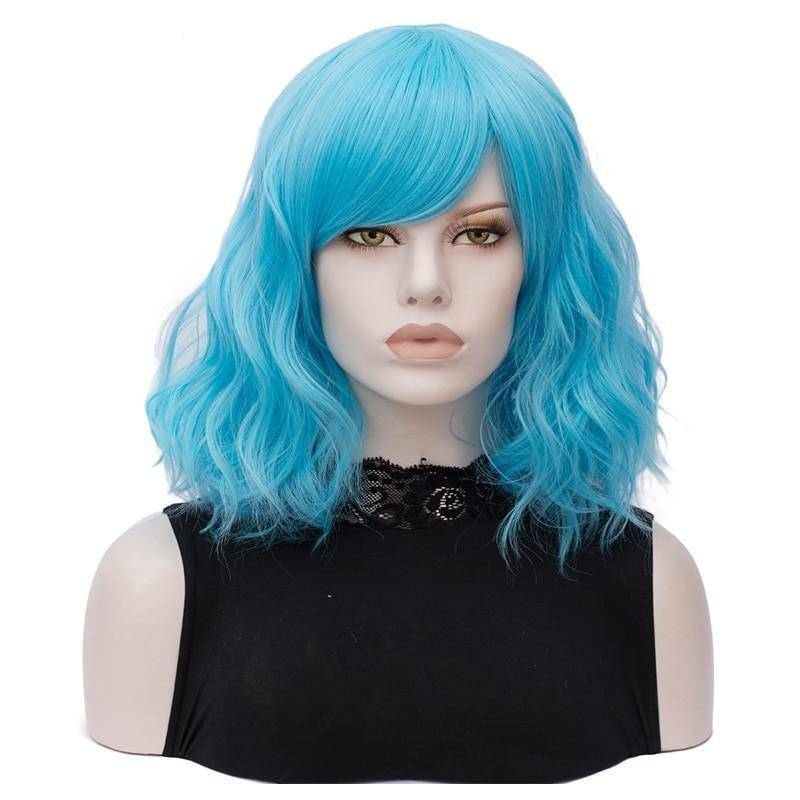 Deze hemelsblauwe pruik is de perfecte aanvulling op elk verkleedkostuum.