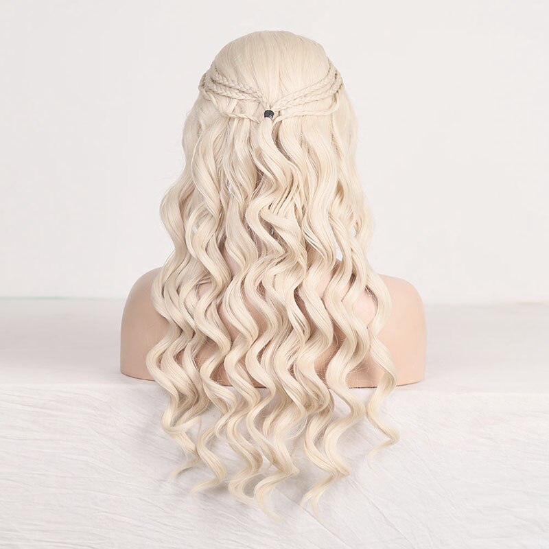 Behoor tot House Targaryen en word de mooiste in de hele saga met onze Game of Thrones pruik! De zachtste tint blond gestyled in een lange, golvende manen met twee lokken, vergezeld van een paar kleine vlechten aan elke kant, perfect gedaan om op je geliefde Daenerys te lijken.