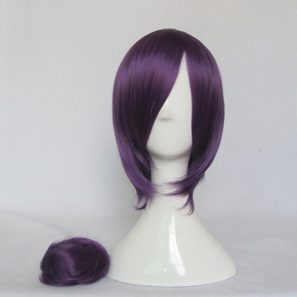 Sluit je aan bij de Akatsuki als het enige vrouwelijke lid en word een Amegakure kunoichi met onze Naruto pruik! De perfecte kleur paars gestyled in een korte rechte manen met een afneembare knot aan de zijkant, vergezeld van franjes aan de zijkant, perfect gemaakt om naar je volgende conventie te gaan als je geliefde Tenshi, Konan.
