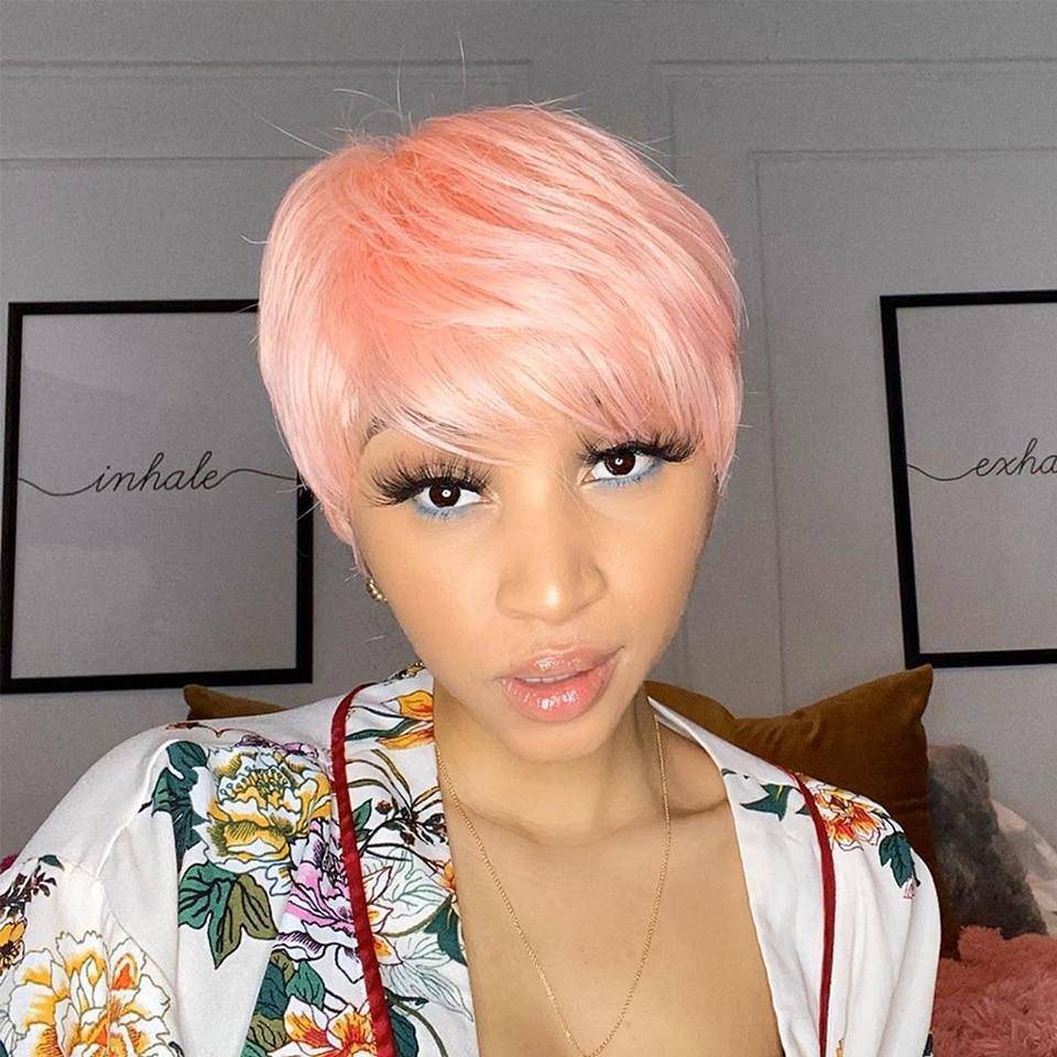 Je zult vallen voor deze korte, felroze pruik. Hij zal je veroveringen doen smelten met onthutsend gemak. Hij is gemaakt van echt Braziliaans haar dat na de montage is geverfd.