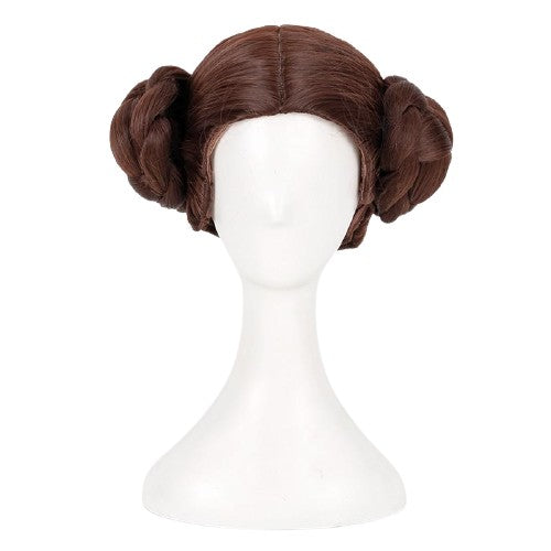 Leid de Alliantie om de Republiek te herstellen en word een belangrijk lid van de Galactische Senaat met onze Star Wars pruik! De ideale donkerbruine tint is gestyled in twee gevlochten knotten aan de zijkant, vergezeld van een perfect uitgevoerd gescheiden kapsel om te lijken op de prinses van Alderaan, Leia Organa.
