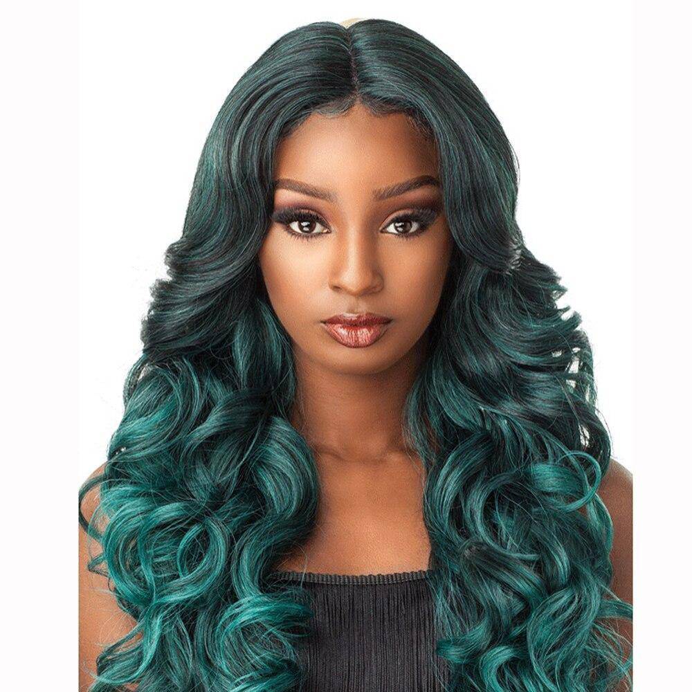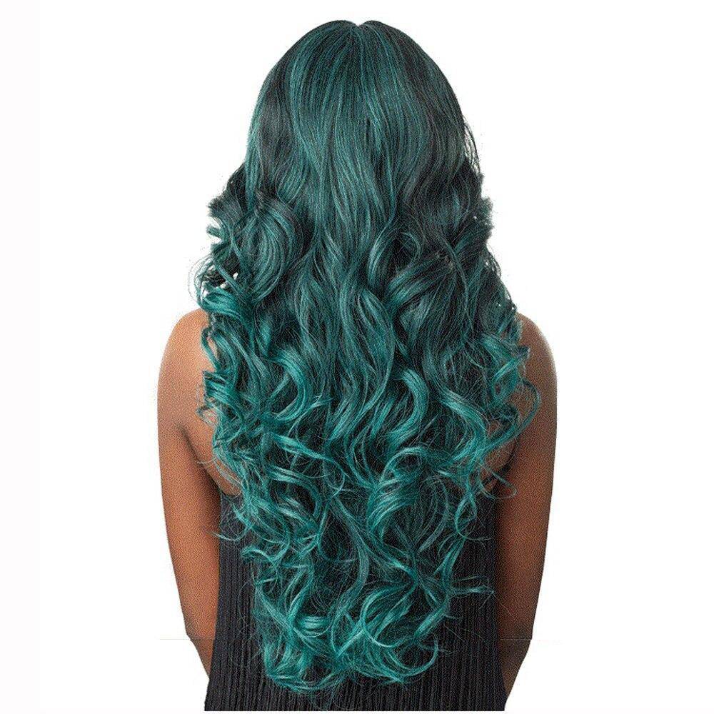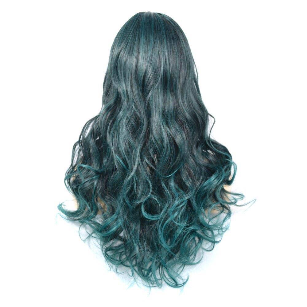 Deze golvende pruik is perfect voor een elegante look. De groene kleur voegt een lichte, verleidelijke touch toe.