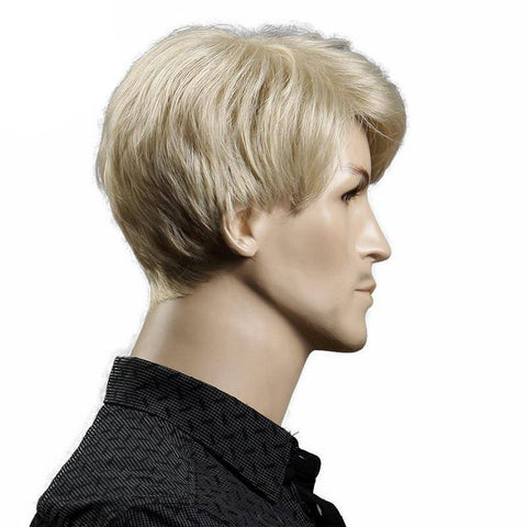Verander je kapsel naar wens en verjong je look in een handomdraai met onze korte herenpruik! De perfecte zachtblonde tint gestyled in een kort kapsel met een bijgesneden rug, gevolgd door een lange neklijn en vergezeld van perfecte franjes aan de zijkant om je outfits nog modieuzer te maken.