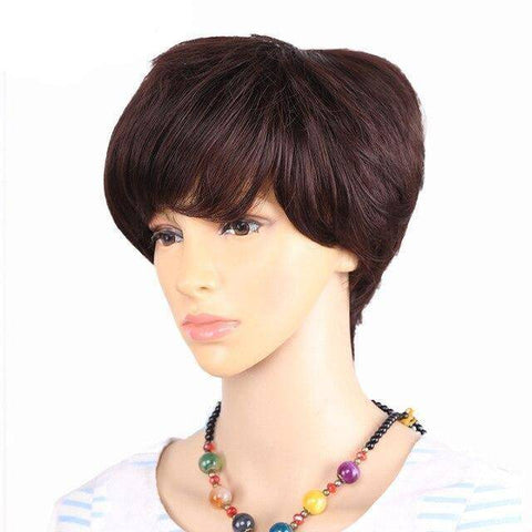 Breng je outfits naar een hoger niveau en verander je haar naar wens met onze vrouwelijke korte pixiepruik! Kies uit onze drie basis haarkleuren: bruin, zachtbruin en zwart, gestyled in een korte rechte pixie manen met franjes aan de zijkant en een langere neklijn perfect om je gelaatstrekken in een oogwenk te accentueren.