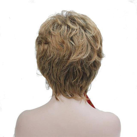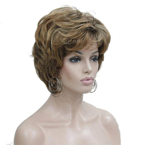 Wees klaar voor elke gelegenheid en geef je haar een meer volwassen look met onze korte gelaagde bruine pruik! De perfecte tint zacht bruin met donkerblonde highlights, gestyled in een golvend pixie kapsel met laagjes en een subtiele pony, ideaal om er elke dag salonfris uit te zien.
