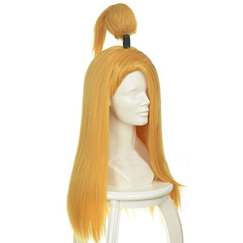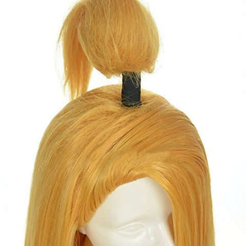 Sluit je aan bij de Akatsuki organisatie en word een krachtige S-rank ninja met onze Deidara Naruto pruik! De ideale geelblonde tint gestyled in een lange rechte manen met een hoge paardenstaart op halve hoogte, vergezeld van franjes aan de zijkant en een optionele hoofdband, perfect gemaakt om naar je volgende conventie te gaan als je geliefde Renegade Ninja, Deidara.