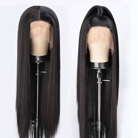 Maak je look natuurlijker en verander je haar wanneer je maar wilt zonder het te beschadigen met onze lange zwarte lace pruik! De perfecte kleur diepzwart gestyled in een lange, rechte manen met een natuurlijke haarlijn, vergezeld van een scheiding met een pruikengaas voor perfecte hold en zorgeloos genieten.