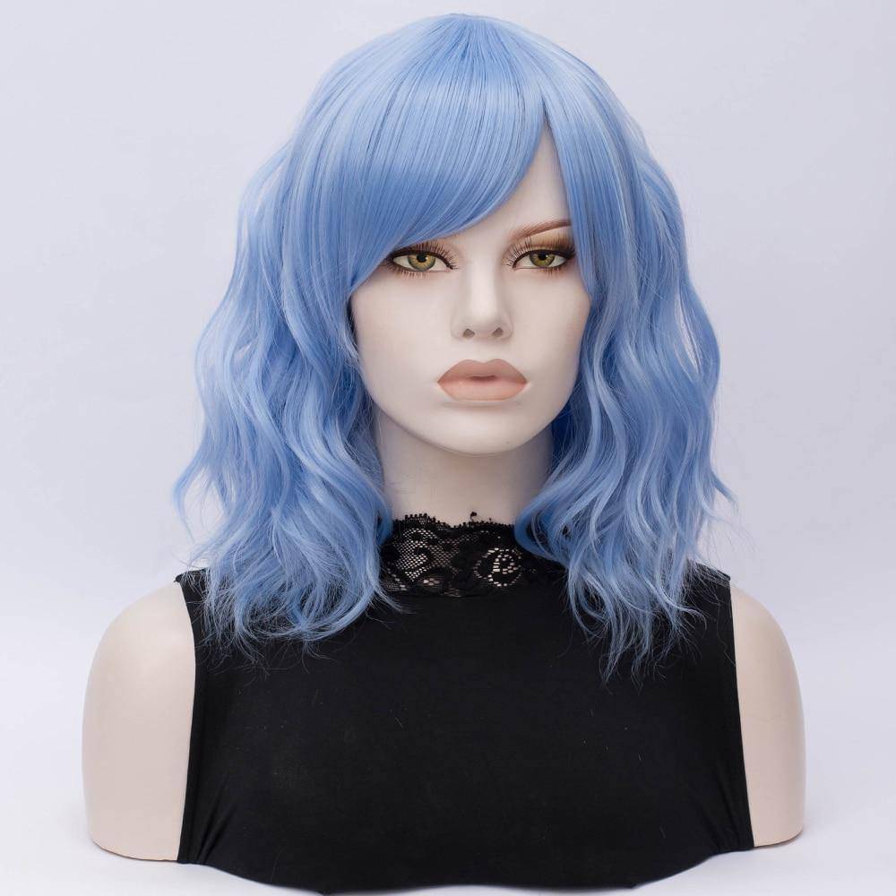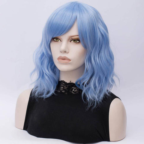De golvende halflange pruik voor sprookjesachtige elegantie. Dit prachtige blauwe synthetische haar brengt je hartstocht naar boven en wordt een van je favoriete haarstukken.