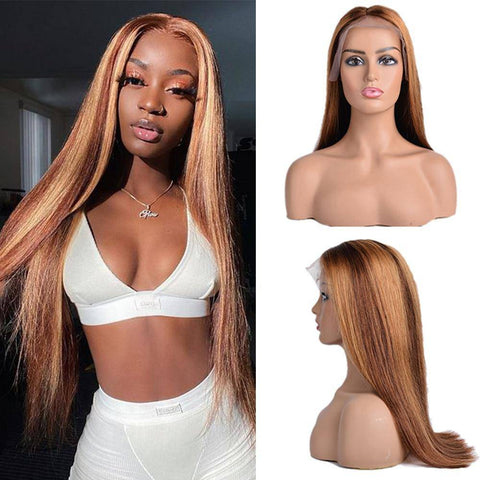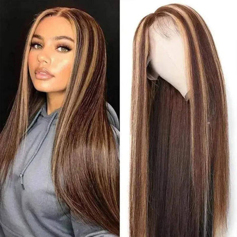 Pronk met Braziliaans mensenhaar van de hoogste kwaliteit en zet nieuwe trends waar je ook gaat met onze natuurlijke lange lace wig! De perfecte combinatie van een donkere karamelbruine basis met stevige honingbruine highlights, gestyled in een lange rechte zijdeachtige manen met meerdere lengteopties, perfect voor elke gelegenheid.