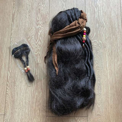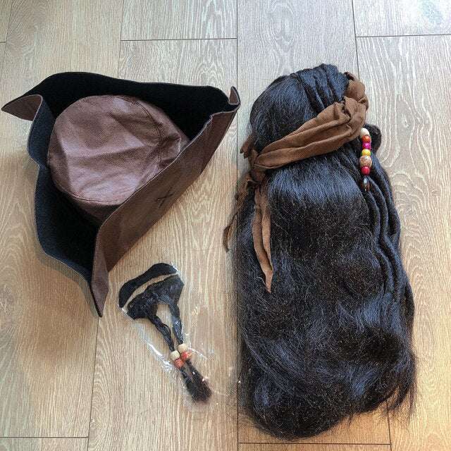 Breng Disney's beroemdste kapitein tot leven en blijf rellen stelen onder invloed van rum met onze Pirates of the Caribbean pruik! De perfecte diepzwarte tint gestyled in een mannelijke midi manen met een wilde golvende look vergezeld van een paar vlechten met parels, een perfect gemaakt kopstuk en hoed om je geliefde Jack Sparrow te spelen.