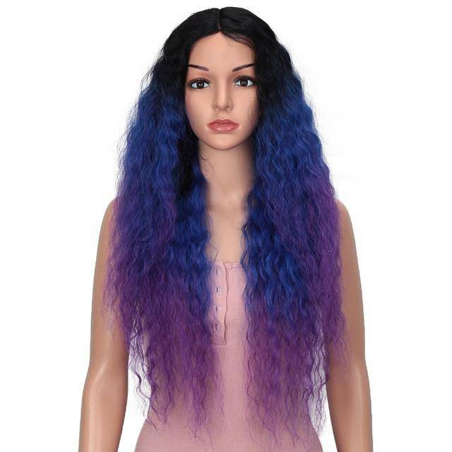 Krijg de wildste look in een paar seconden en geef jezelf de krullen die je altijd al wilde met onze lange ombre pruik! De perfecte mix van diepzwarte wortels, gevolgd door een metallic blauw perfect gemengd met een paarse tint om een prachtig kleurverloop te creëren, gestyled in een lange krullende manen met een middenscheiding, ideaal om je volgende outfit origineler te maken.