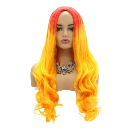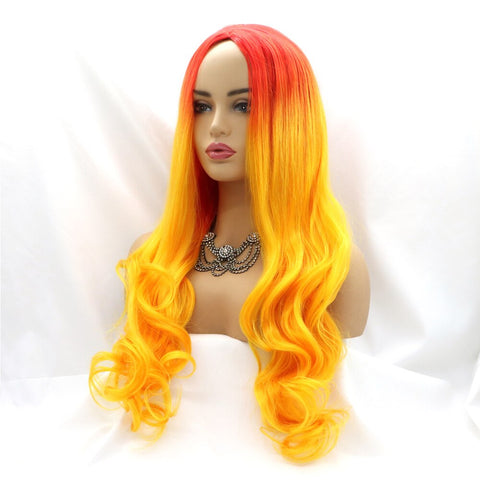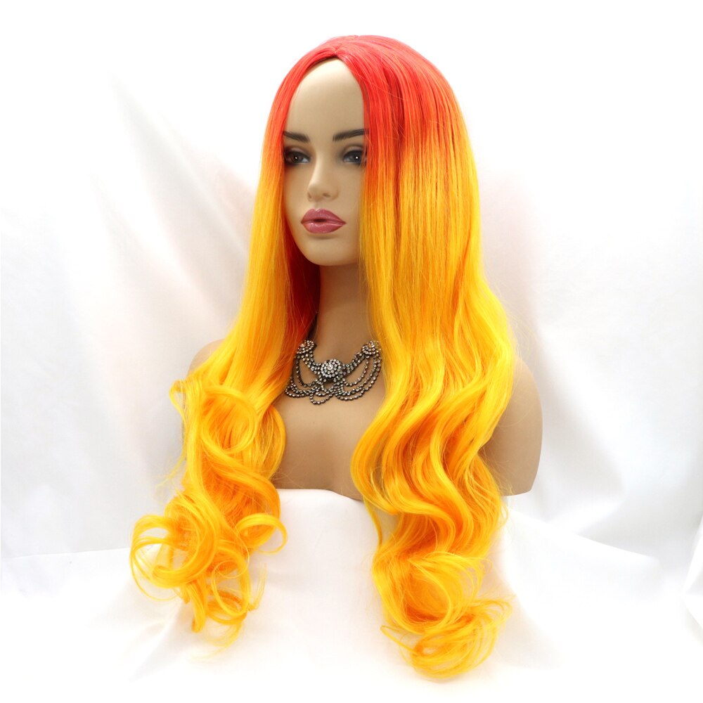 Verover ieders hart in een paar seconden door een levendig vleugje kleur toe te voegen aan je alledaagse look met onze golvende lange vlammenpruik! De perfecte dikke manen van felrood haar met een geeloranje schaduw die een vlam imiteert, gestyled met de zachtste golven aan de uiteinden, vergezeld van een gesplitst kapsel dat ideaal is om je volgende outfit een extravagante look te geven.