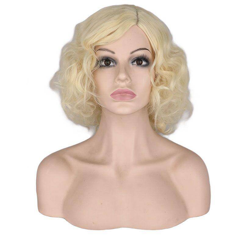 Dit volledig handgemaakte kapsel van synthetische vezels biedt ultiem comfort terwijl het je stijl verbetert. Onze blonde krullenpruik verheldert je gezicht en verzacht je gelaatstrekken. Voor dagelijks gebruik of speciale avondjes uit, dit Marylin Monroe-stijl haarstuk geeft je een snelle transformatie en een ultra-realistisch effect. Alles wat je nodig hebt is wat mooie make-up en een glamoureuze outfit, en je bent klaar om te gaan. Je ziet eruit als een actrice uit de jaren 50.