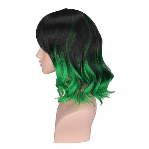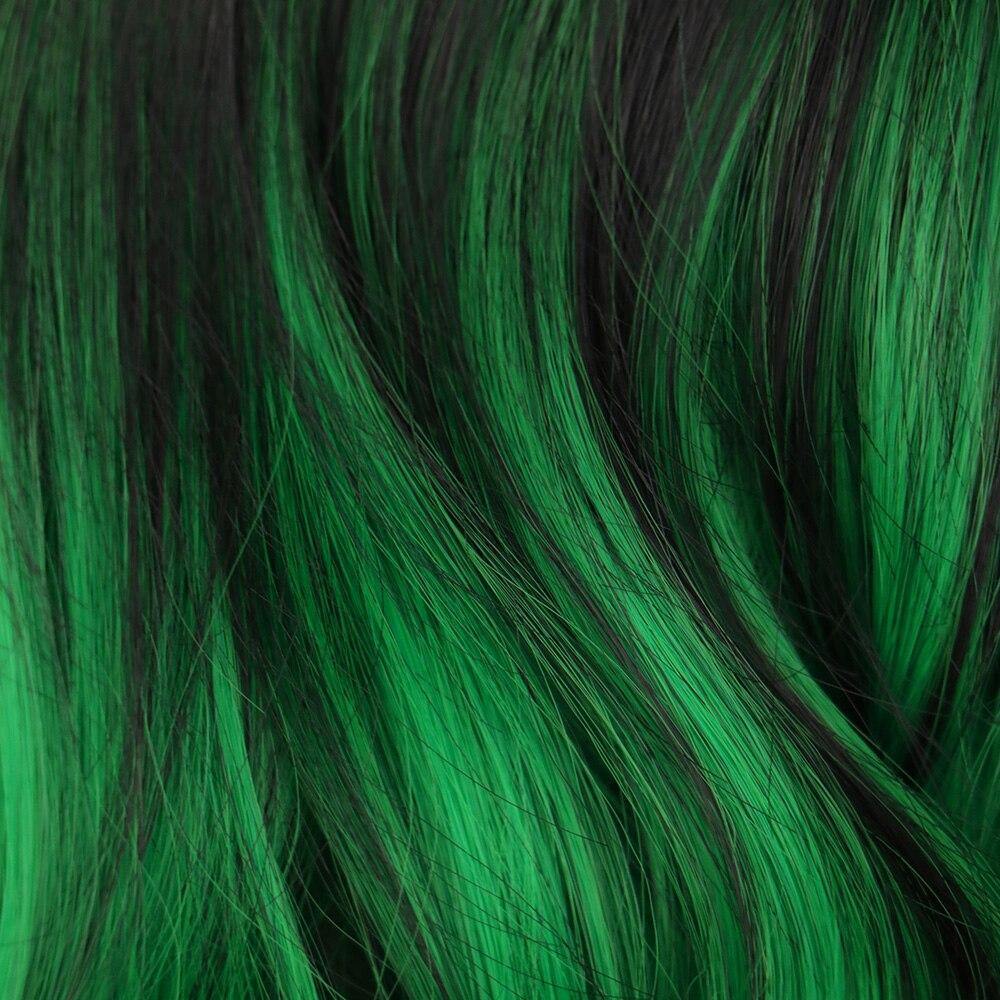 De kleine pony aan de zijkant en de groene highlights geven deze synthetische pruik een glamoureuze look. Dit haarstuk is de perfecte manier om een gedurfde coupe te dragen zonder het risico te lopen je natuurlijke haar te beschadigen.