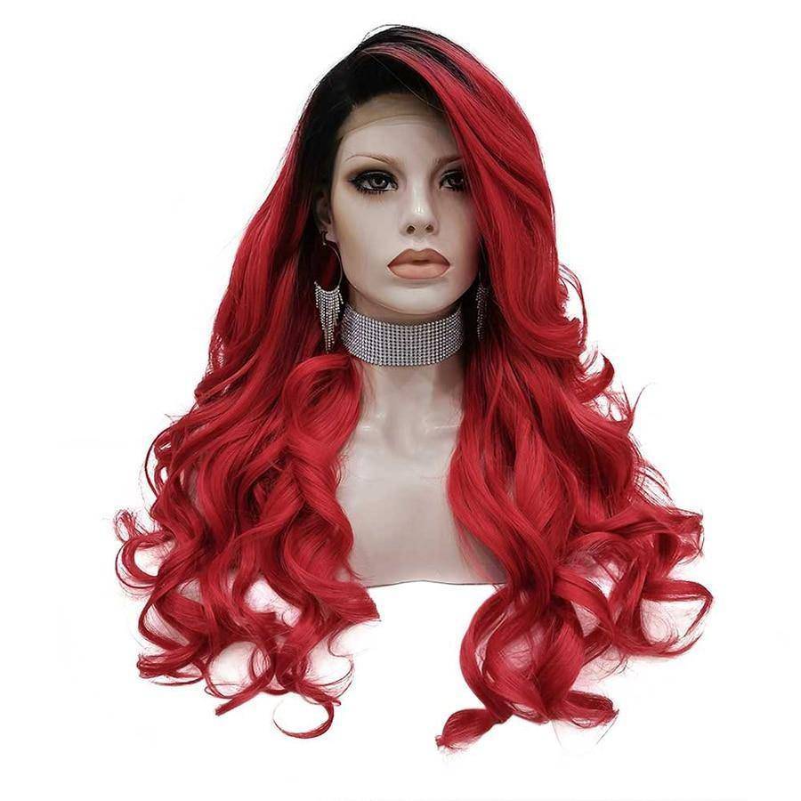 Maak je casual outfits eleganter en aarzel niet om je haar te knippen met onze lange lace wig! De beste tint intens rood met zwarte wortels gestyled in een lange manen met golvende uiteinden, vergezeld van een kapsel met zijscheiding dat elke gedroomde outfit compleet maakt.