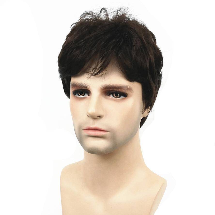 Breng je outfits naar een hoger niveau en verander je haar naar wens met onze Korte Zwarte Mannelijke Pruik! Een donkerbruine tint gestyled in een korte manen met een volumineuze bovenkant en bijgesneden zijkanten, vergezeld van licht golvende bakkebaarden, ideaal om je een meer volwassen look te geven.