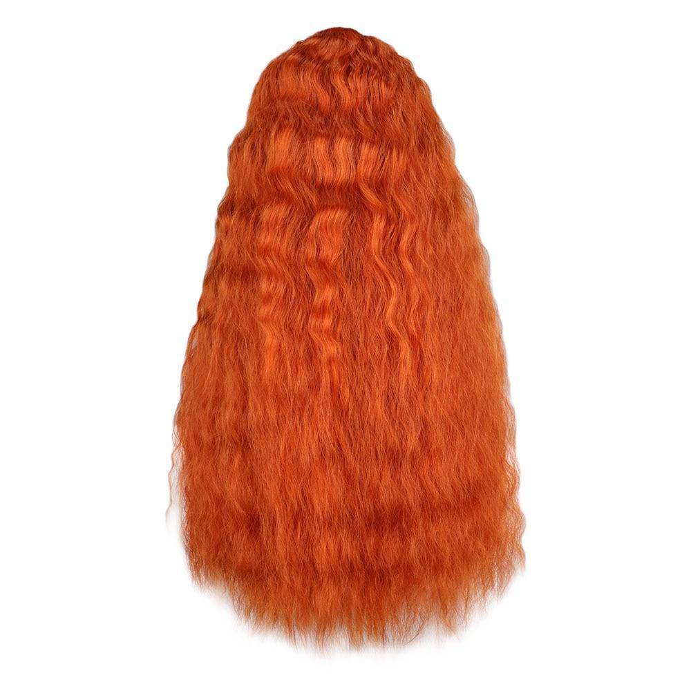 Laat je wildste look met trots zien en verander de grootte van je haar gemakkelijk met onze krullende pruik! De perfecte kleur fel oranje gestyled in een lange, rommelige, volumineuze manen, vergezeld van een gesplitst kapsel ideaal voor een make-over in seconden.