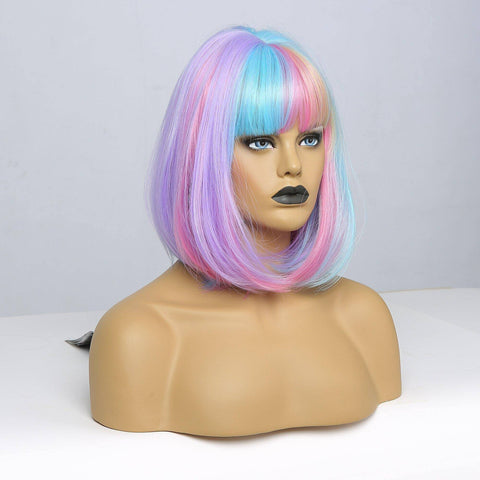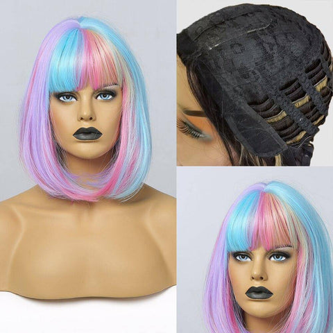 Zie eruit als een zeemeermin rechtstreeks uit een mythologisch verhaal en maak van elke outfit een magische met onze lace bob pruik! De perfecte pastelregenboog van koele tinten, gestyled in een midi manen vergezeld van een dikke franje met kleurrijke lokken die perfect zijn gemaakt om ieders hart een slag over te laten slaan.