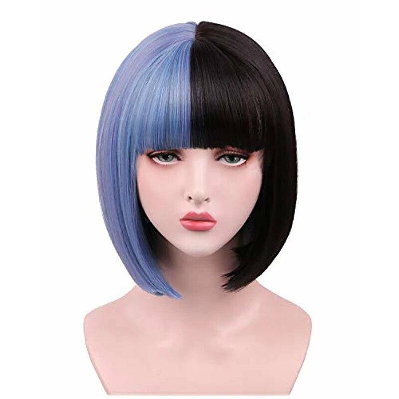 Breng je alternatieve outfit moeiteloos naar een hoger niveau en verander jezelf in het mode-icoon van je dromen met onze Half en Half Lange Bob Pruik! De perfecte mix van een zwarte kant en een pastel lavendel kant met blauwachtige highlights, gestyled met een rechte lange bob vergezeld van franjes die zullen fungeren als een frame om de proporties van je gezicht te herstructureren.