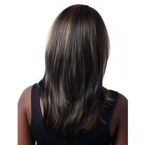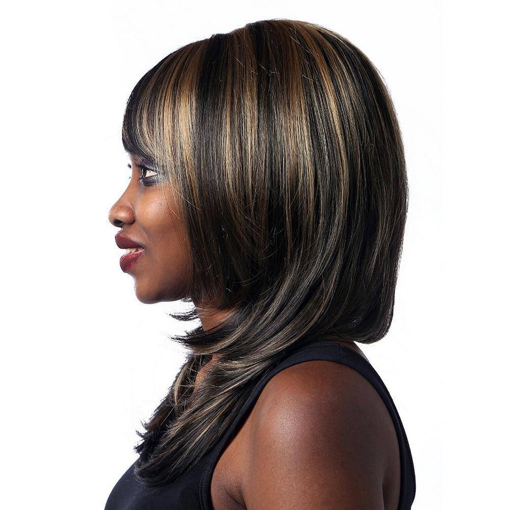 Maak je casual outfits eleganter en wees klaar voor elke situatie met het perfecte kapsel met onze Damespruik middellang met highlights! De beste combinatie bestaat uit een donkerbruine basis met perfect gemengde blonde highlights, gestyled in een rechte, zijdezachte manen met gebogen uiteinden, vergezeld van een lange pony aan de zijkant, ideaal om je een frisse, jeugdige touch te geven.