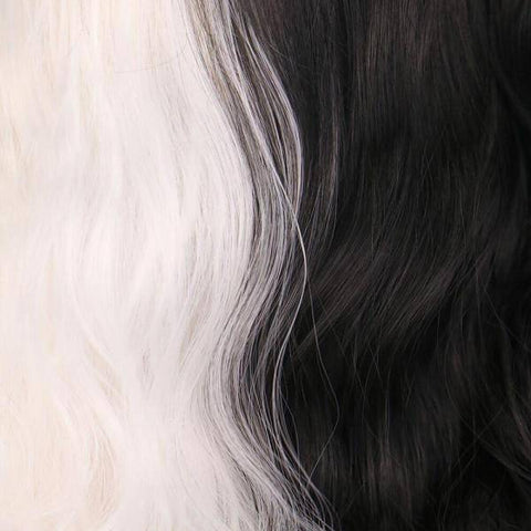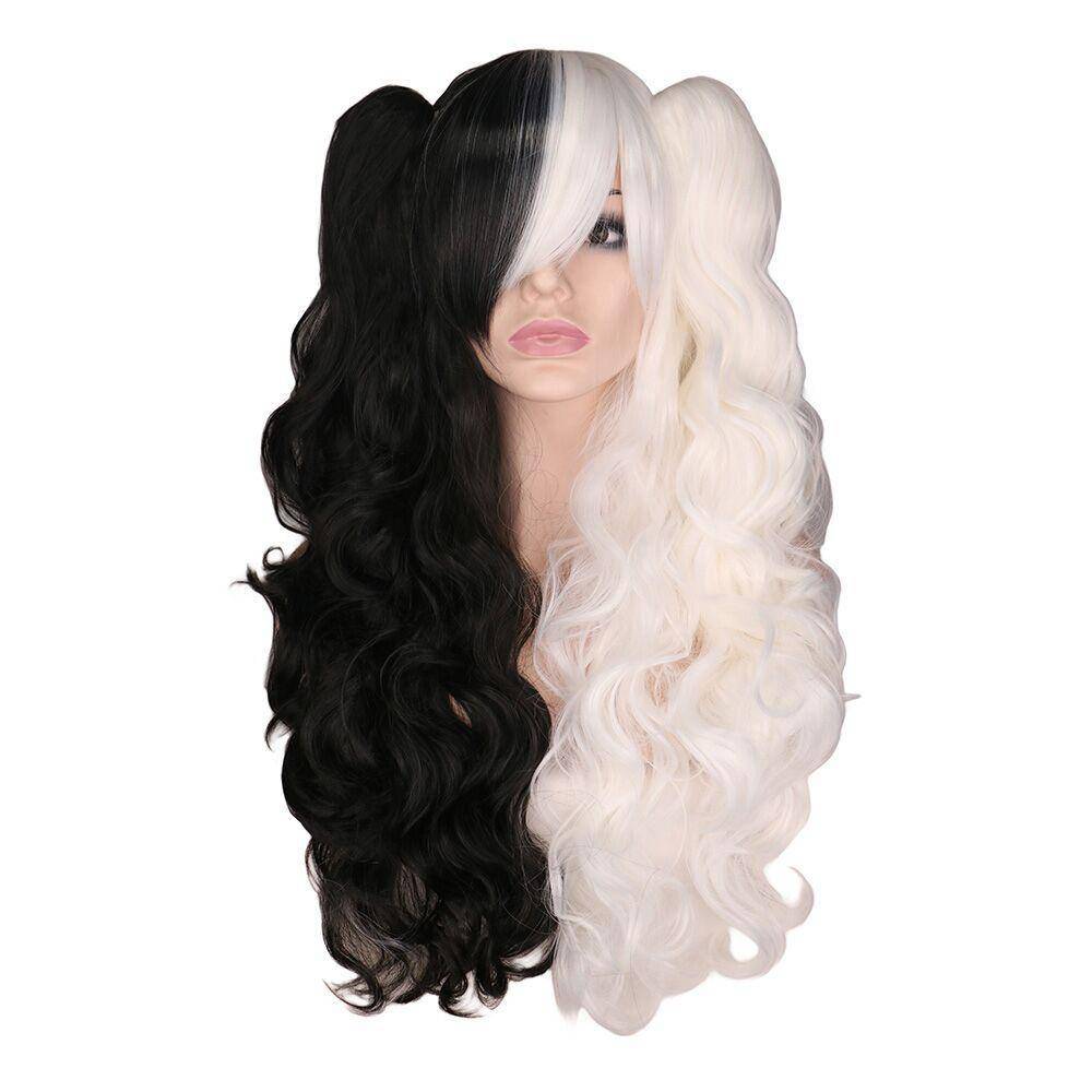 Word het alternatieve mode-icoon waar je altijd al van gedroomd hebt en trek in een oogwenk de aandacht door onze gespleten paardenstaartpruik te dragen! De perfecte combinatie van het diepste zwart en het zuiverste wit, gestyled in twee golvende, half-opstaande paardenstaarten met een centrale franje om je volgende outfit nog origineler te maken.