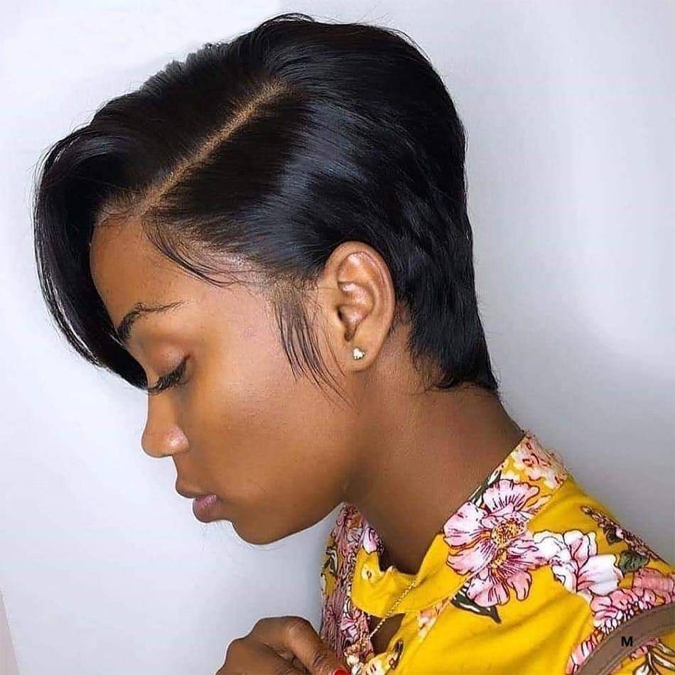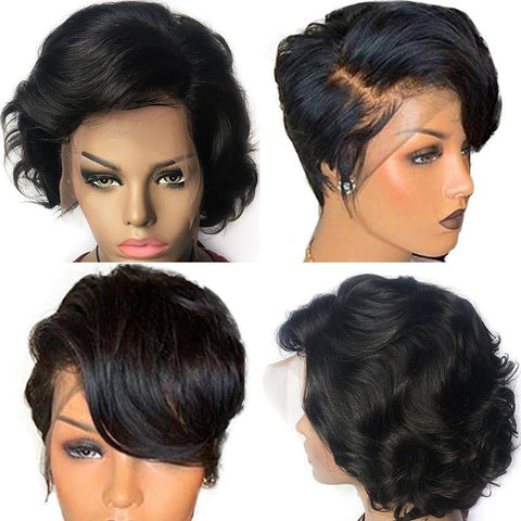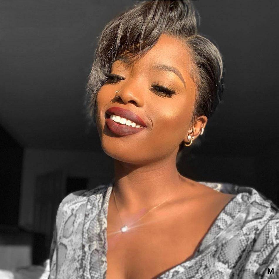 Breng je outfits naar een hoger niveau en verander je haar naar wens met onze natuurlijke korte pixiepruik! De diepste zwarte tint gestyled in een korte, volumineuze pixie met föhngolven, vergezeld van een zijscheiding die perfect is om je looks een chiquere touch te geven.