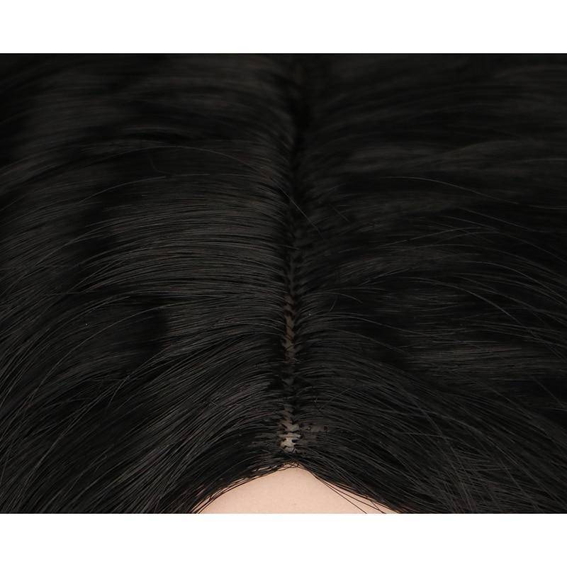 Pronk met trots over de wildste look ooit en verander de grootte van je haar gemakkelijk met onze pruik met lang krullend zwart haar! De perfecte tint donkerzwart gestyled in een volumineuze manen met echt rommelige krullen, vergezeld van een gesplitst kapsel dat ideaal is om ieders hart binnen een paar seconden een slag over te laten slaan.