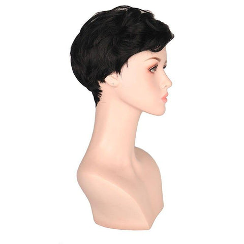 Verander je haar naar wens en breng je outfits naar een hoger niveau met onze Korte Zwarte Pruik! De perfecte tint diepzwart gestyled in een korte pixie met golvende uiteinden en een langere neklijn, perfect gemaakt om er modieus uit te zien waar je ook gaat.